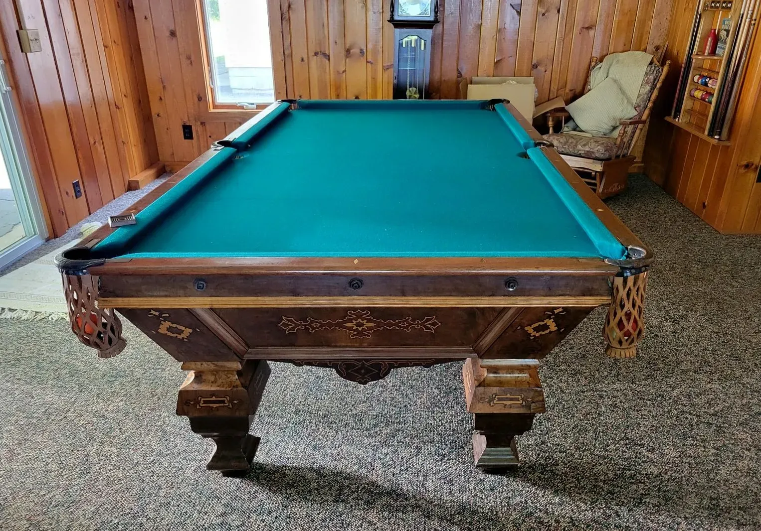 8' Antique 1880s Brunswick "Eclipse" Pool Table with beautiful inlays.